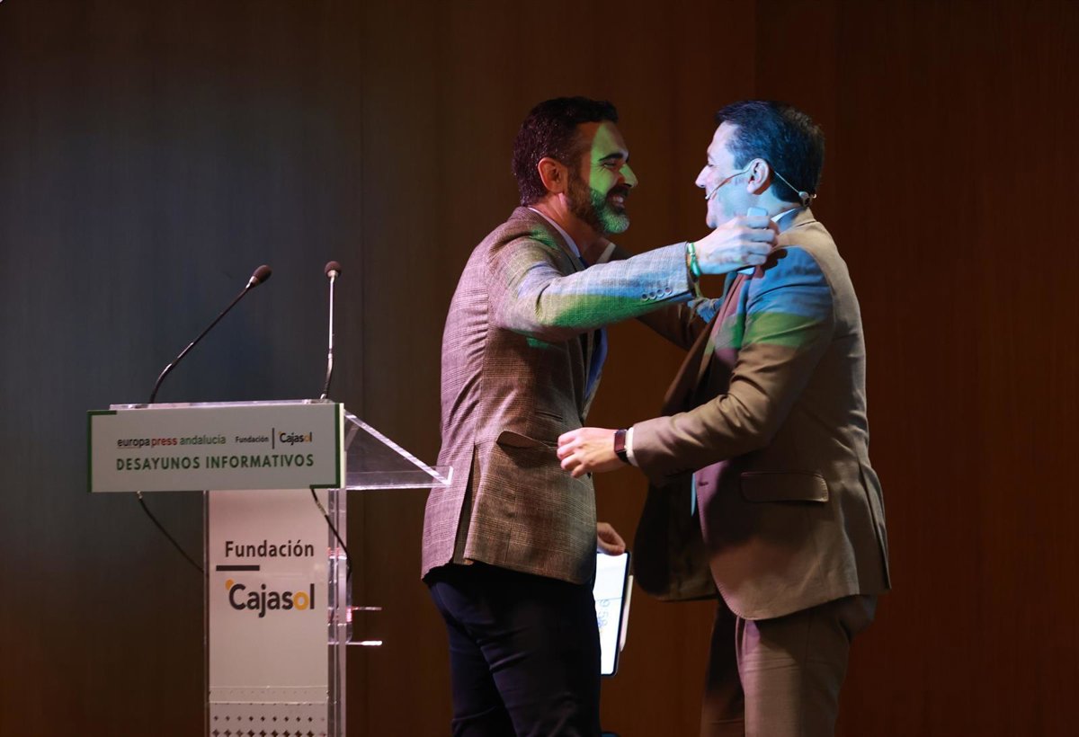El presidente de la FAMP y alcalde de Córdoba, José María Bellido, (d) junto al consejero de Sostenibilidad, Medio Ambiente y Economía Azul de la Junta de Andalucía y portavoz del gobierno, Ramón Fernández-Pacheco (i). - Rocío Ruz - Europa Press