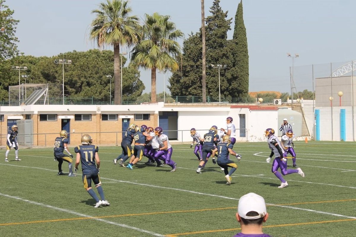 Imagen de archivo de un partido de fútbol americano entre los clubes Mairena Blue Devils y Sevilla Linces. - SEVILLA LINCES
