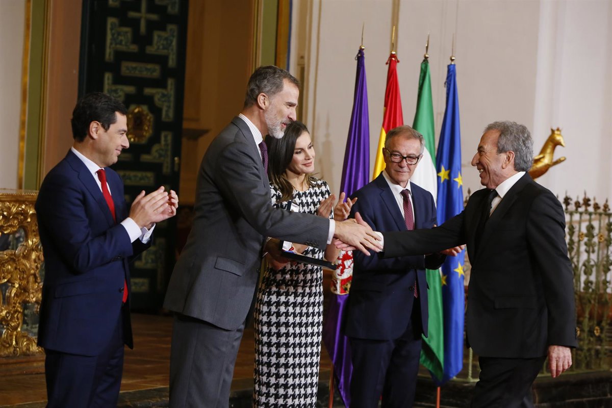 El Rey saluda a José Luis Perales junto a la Reina, Guirao (dcha.) y Moreno (izd - EUROPA PRESS/ENRIQUE GOMEZ