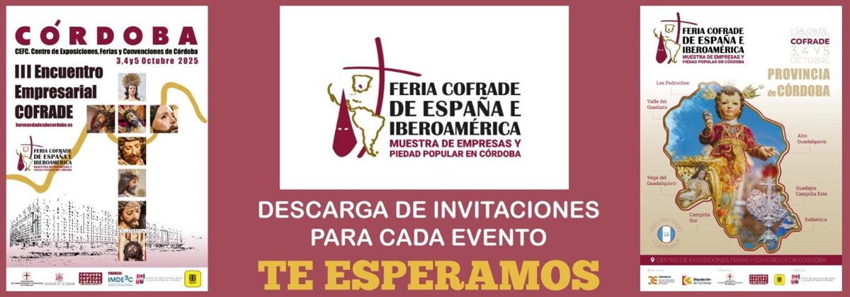 La Feria Cofrade de España e Iberoamérica ha anunciado este jueves que ya está abierto el plazo para solicitar las invitaciones gratuitas para asistir a este gran encuentro, que se celebrará del 3 al 5 del próximo mes de octubre en el Centro de Exposiciones, Ferias y Convenciones (CEFC) de Córdoba.
