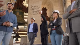Las obras, que comenzaron en junio de 2024 y cuentan con un plazo de finalización en junio de 2026, se centran actualmente en las cubiertas para evitar humedades, en las fachadas para frenar el deterioro, en el interior de la torre, el tratamiento de conservación de las campañas y la renovación de las instalaciones para hacerlas más eficientes y seguras.