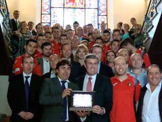 Al acto han asistido tanto la directiva, como el cuerpo técnico y los jugadores a los que la ciudad, representada por la corporación municipal, ha hecho un "caluroso reconocimiento oficial pues se merecían esta División de Honor".