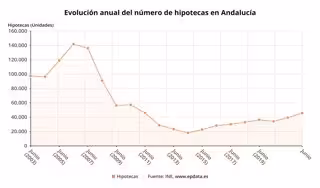 Con el avance interanual de junio, que modera en más de doce puntos el registrado en mayo, la firma de hipotecas sobre viviendas en la comunidad andaluza encadena 16 meses de ascensos interanuales consecutivos.