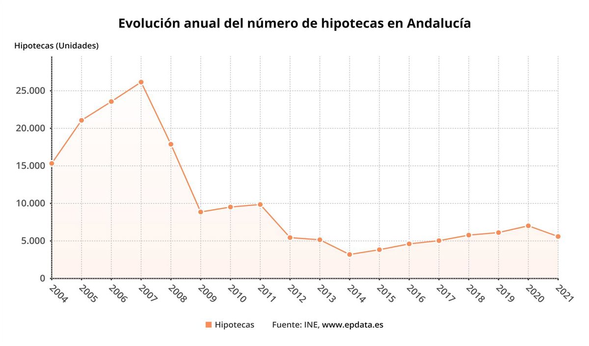Evolución anual del número de hipotecas en Andalucía. - EPDATA