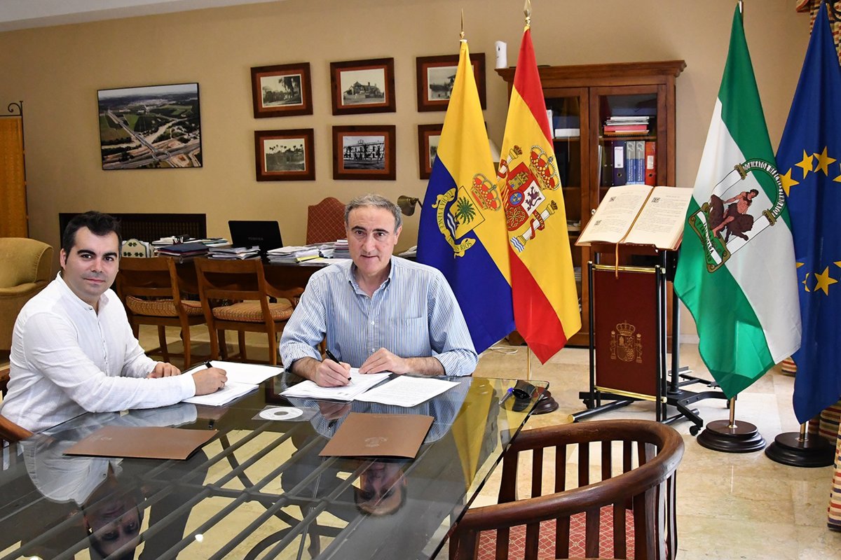 El alcalde de Palma del Río (Córdoba), José Antonio Ruiz Almenara, y el representante de la Unión Temporal de Empresas (UTE) Nexo, David Martínez, han firmado este martes el contrato administrativo correspondiente a la redacción y ejecución del proyecto ejecutivo museográfico de Santa Clara-Espacio Fundación Victorio&Lucchino, cuya finalidad es la de dotar a la ciudad de un equipamiento cultural de primer orden dedicado al diseño y la moda, que ocupará parte de las dependencias del recién adquirido Convento de Santa Clara.