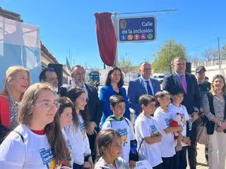 La localidad cordobesa de Fuente Obejuna se ha convertido este jueves en el primer municipio español con una 'Calle de la Inclusión', tras aprobar la petición realizada al Ayuntamiento por parte de estudiantes y docentes del Colegio Público Rural Maestro José Alcolea de la localidad, y cuya placa ha sido descubierta por la alcaldesa, Silvia Mellado, el delegado de Cohesión Territorial de la Diputación, Juan Díaz, el presidente del Grupo Social ONCE, Miguel Carballeda, y el director general de Personas con Discapacidad de la Junta, Pedro Calbó.