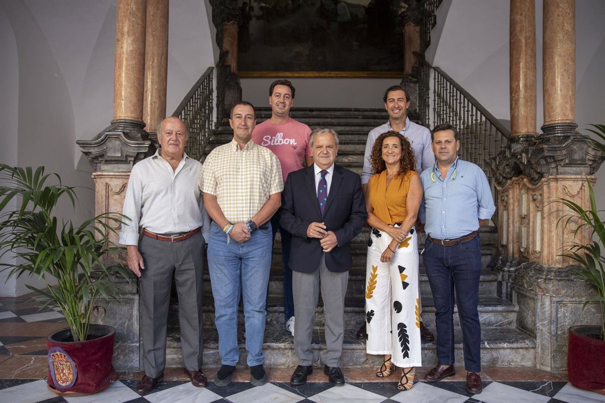El presidente de la Diputación de Córdoba, Salvador Fuentes, ha recibido este martes a representantes de la agrupación 'Bicigrinos', integrada por 21 ciclistas-peregrinos, a los que se suman tres personas de apoyo y logística, que recorrerán el camino hasta el Santuario de la Virgen del Rocío, en Almonte (Huelva) con fines benéficos, en este caso para recaudar fondos a favor de la investigación del Alzheimer.