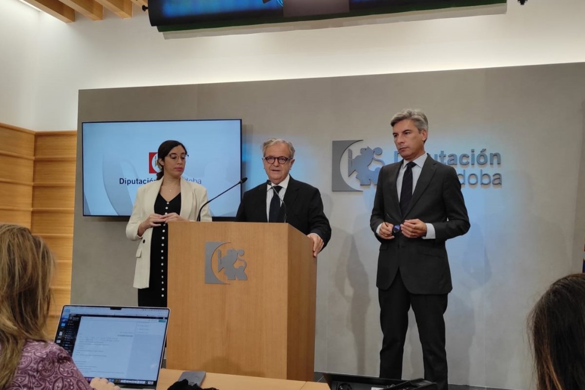 El presidente de la Diputación de Córdoba, Salvador Fuentes (centro), en rueda de prensa. - EUROPA PRESS