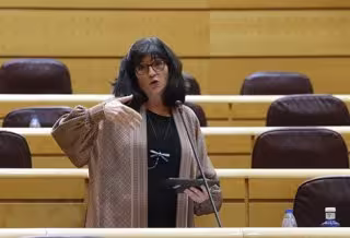 La senadora de Adelante Andalucía, Pilar González Modino, interviene en la Comisión General de Comunidades Autónomas celebrada en el Senado este jueves a cuenta de la gestión de la pandemia de la COVID-19, en Madrid (España), a 30 de abril de 2020. - Pool - Archivo