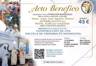 Según destacan desde la entidad, este año se cumplen los 26 años de celebración de esta cita solidaria para atender la financiación de los muchos proyectos que el obispo cordobés titular de la Diócesis de Bangassou, monseñor Juan José Aguirre, lleva a cabo en Bangassou, de hecho él se desplazará expresamente para asistir y presidir el acto del día 14 de marzo, junto con el obispo coadjutor, monseñor Aurelio Gazzera.
