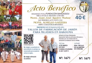 Según destacan desde la entidad, este año se cumplen los 25 años de celebración de esta cita solidaria para atender la financiación de los muchos proyectos que el obispo cordobés titular de la Diócesis de Bangassou, monseñor Juan José Aguirre, lleva a cabo en Bangassou, de hecho él se desplazará expresamente para asistir y presidir el acto del día 8 de marzo, junto con el nuevo obispo coadjutor recién nombrado, monseñor Aurelio Gazzera.
