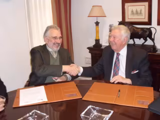En el acto de la firma del convenio los dos presidentes estuvieron acompañados por el director general de Caja Rural del Sur, Rafael López Tarruella, además del responsable en Córdoba de la entidad financiera, José Luis Vega-Leal.