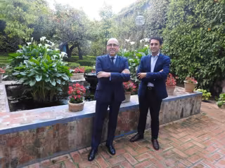 Joseba Barrena y Leopoldo Izquierrdo en uno de los patios del Palacio de Viana. - FUNDACIÓN CAJASUR