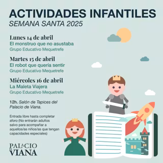 Las distintas animaciones culturales son de carácter gratuito, hasta completar aforo, y para niños de edades comprendidas entre los cuatro y los 12 años. Con estas actividades, el Palacio de Viana da a conocer su patrimonio y las acciones culturales que en él se desarrollan entre los más pequeños de la casa.