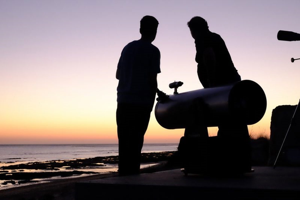 Archivo - Dos personas realizan observaciones astronómicas en una imagen de archivo. - FUNDACIÓN DESCUBRE - Archivo
