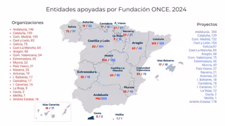 Del mismo modo, en todo el país la cifra de asociaciones que recibieron el apoyo de Fundación ONCE ascendió a 956 y el total de proyectos a 1.294.