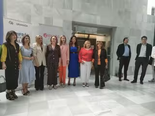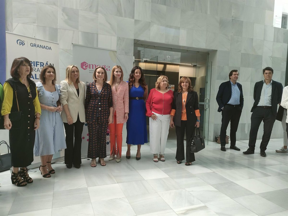 Cuca Gamarra, cuarta por la izquierda en la imagen, con Marifrán Carazo a su derecha, en un encuentro con empresarias en Granada - EUROPA PRESS