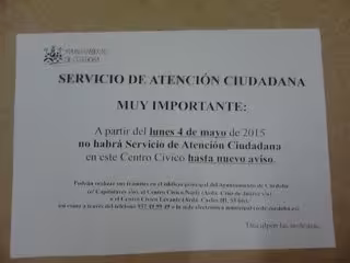 Ganemos Córdoba ha criticado este lunes la situación que afrontan los servicios de Atención Ciudadana, que, por decisión del gobierno municipal del PP, "han visto reducidas sus oficinas a la mitad desde el 4 de mayo", ya que "los centros cívicos Arrabal del Sur y Poniente Sur, que servían de puntos de información y gestión de una serie de trámites, han suprimido 'temporalmente' esta actividad, quedando en la ciudad solo dos centros cívicos que prestan este servicio y obligando a la vecindad a desplazarse a otro distrito o al Ayuntamiento para tal fin".