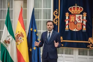 El ministro de Consumo, Alberto Garzón, atiende a los medios en la Delegación del Gobierno en Andalucía. - MINISTERIO DE CONSUMO