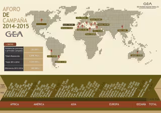 En cuanto a las existencias, y dado precisamente que la campaña en Portugal se ha adelantado a mediados de octubre, se espera que ronden "entre las 200.000 y 300.000 toneladas", una cifra "considerablemente baja comparada con otros ejercicios", al decir del presidente de GEA Westfalia Separator Ibérica, Juan Vilar, debido principalmente a "la evolución de las exportaciones, que, con una media de 150.000 toneladas por mes, superarán por primera vez en la historia el millón de toneladas".