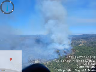 Respecto al incendio referido, "el mismo ha afectado a unas 1.300 hectáreas de terreno militar perteneciente al CMT de Cerro Muriano, que se encuentra anexo a la base militar del mismo nombre", la cual no se vio afectada por el incendio, con lo que no fue necesario su desalojo.