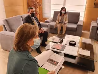 Acompañada del director del aeropuerto, Julián Torres, la delegada ha conocido el proyecto de ampliación en 1.1865 metros cuadrados del edificio terminal, cuyas obras, una vez adjudicadas, se prolongarán por algo más de un año y se centrarán en la redistribución y ampliación del filtro de seguridad por el que los pasajeros acceden a la zona de embarque, la instalación de un control de pasaportes, la construcción de un nuevo núcleo de aseos con medidas anticovid, una mejora en la dotación de las zonas comerciales o la incorporación de dos nuevas salas de embarque, que se sumarán a las cuatro ya existentes.
