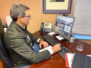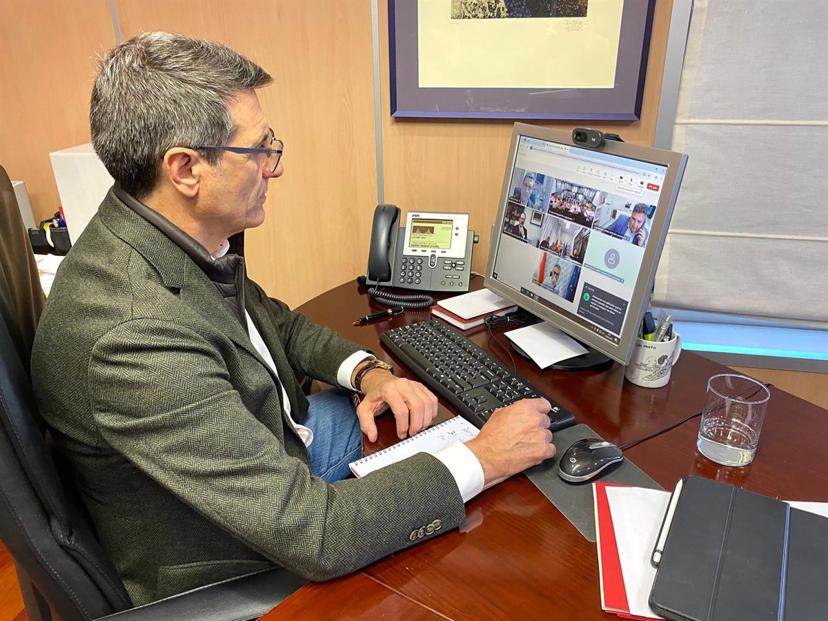 Imagen de la videoconferencia del delegado del Gobierno de España en Andalucía, Pedro Fernández, por el comité asesor del Plan de Emergencia. - DELEGACIÓN DEL GOBIERNO