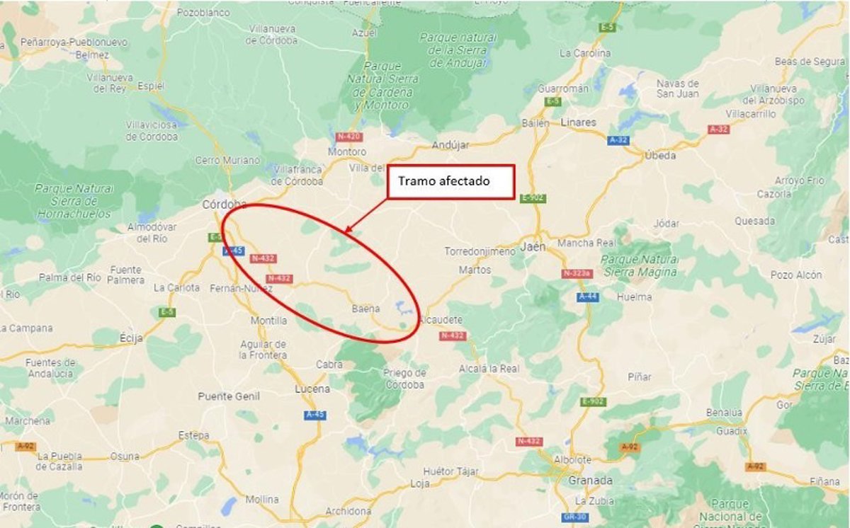 Tramo afectado de la N-432 para la rehabilitación del firme. - MITMA