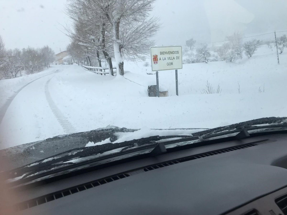 Imagen del acceso al municipio de Gor (Granada) cubierto de nieve - AYUNTAMIENTO DE GOR