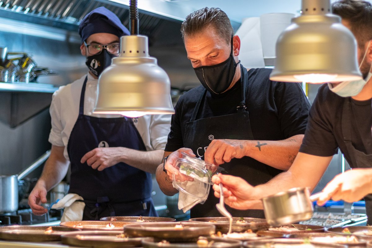 Para la primera jornada de 'Cuatro Manos', María de la O invitó al chef Aurelio Morales del restaurante Cebo de Madrid, que ostenta una estrella Michelín, dos soles Repsol y el premio Métropoli, y que preparó un completo menú con Chechu González, chef del restaurante granadino.