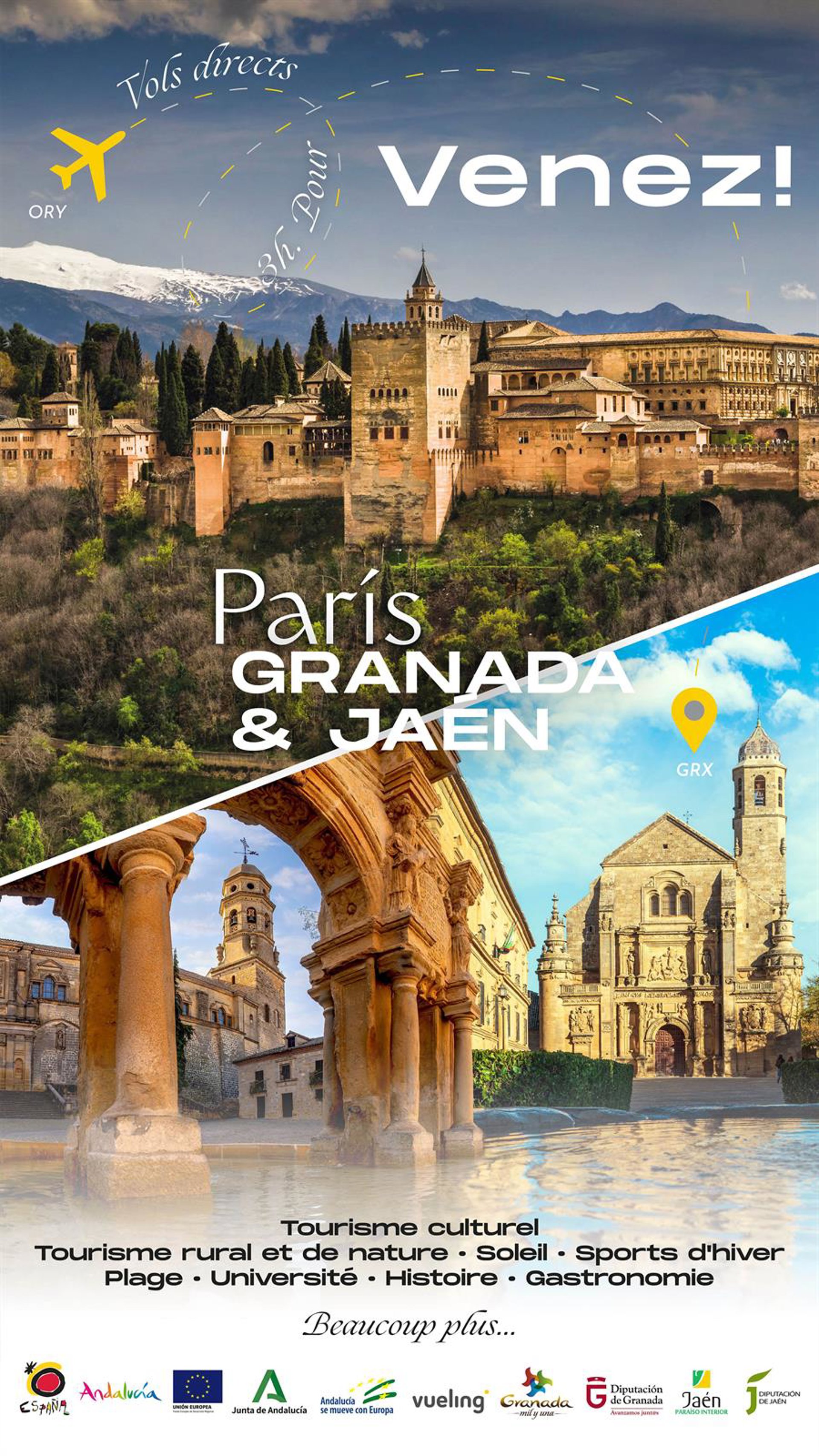Las diputaciones de Granada y Jaén retoman, tras el parón de la pandemia, la estrategia de promoción turística iniciada hace ya varios años para promocionarse conjuntamente en las ciudades de origen de los vuelos internacionales que llegan al Aeropuerto Federico García Lorca Granada-Jaén y la próxima actuación se va a realizar el 28 de junio en París, ciudad reconectada por Vueling desde el pasado mes de noviembre con dos frecuencias semanales.