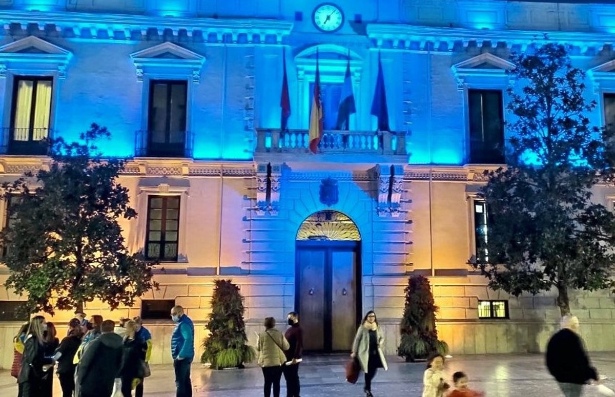 El Ayuntamiento de Granada, iluminado con los colores de la bandera ucraniana, en solidaridad con los damnificados por la guerra - TWITTER DEL AYUNTAMIENTO