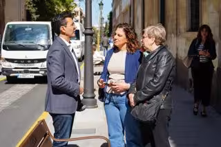 Paco Cuenca, Raquel Ruz y María de Leyva, en la calle Rector López Argüeta - PSOE