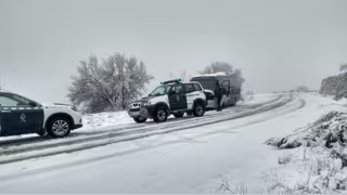 La Guardia Civil ha auxiliado a un autobús con escolares que ha quedado atrapado por la nieve en la carretera que une la pedanía de Arbuniel, en Cambil (Jaén), con el municipio jiennense de Huelma, en Sierra Mágina.