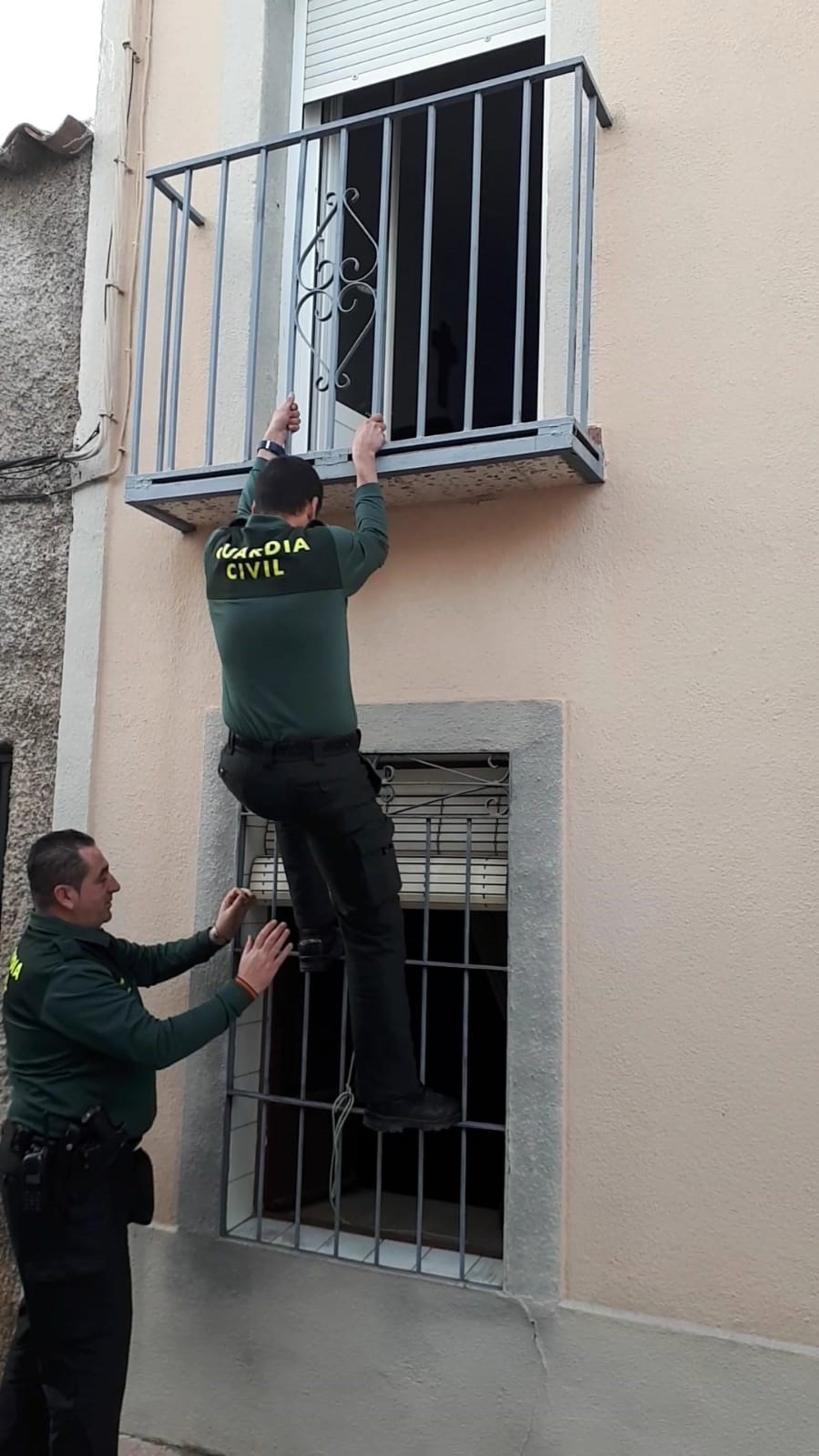 Ante la imperiosa necesidad de realizar el auxilio y por la premura de la actuación, uno de los agentes escaló por la fachada para acceder al interior de la vivienda. Una vez dentro, notó que una de las habitaciones del piso superior desprendía mucho olor y estaba cerrada por dentro.