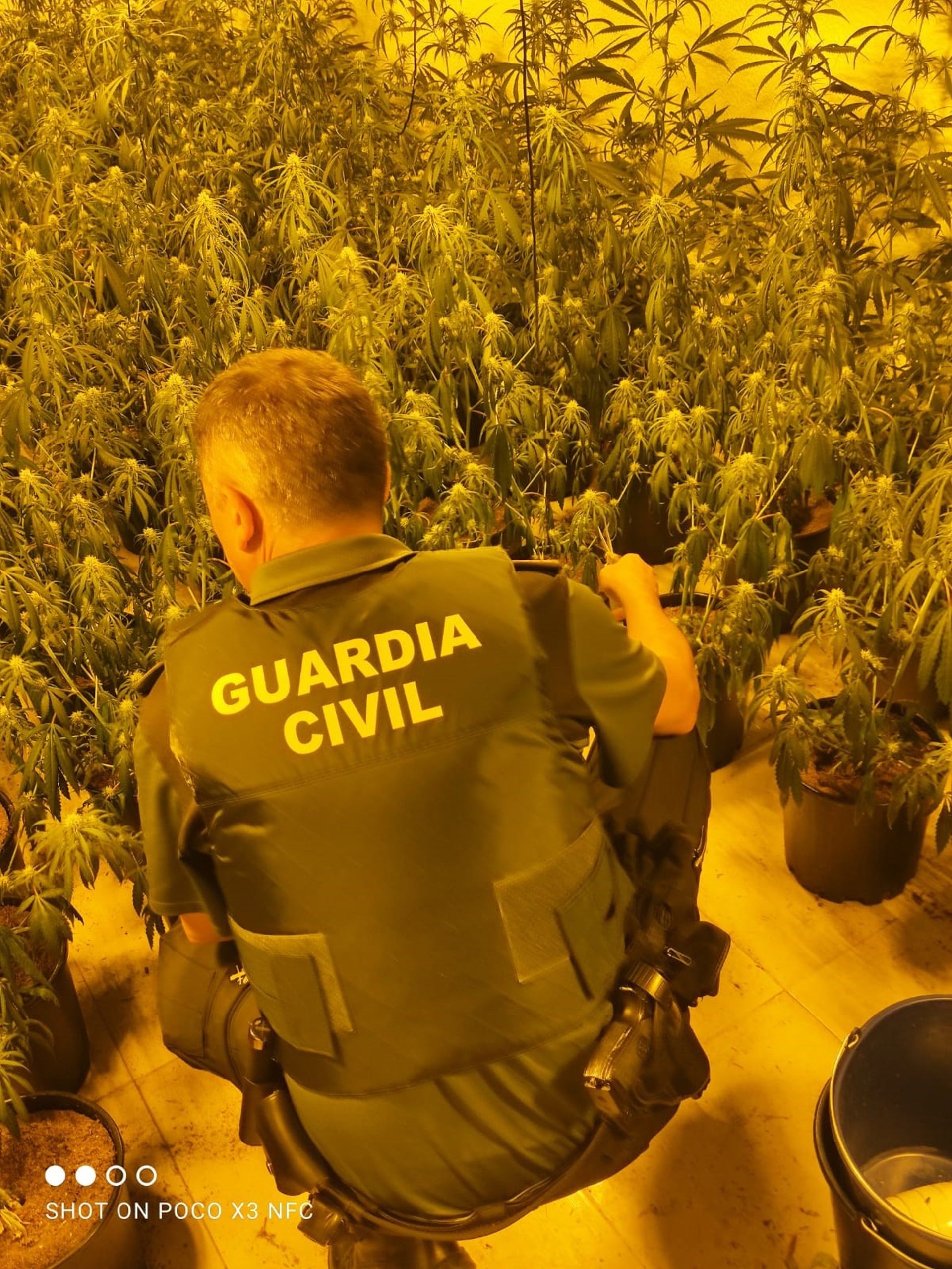 Tras entrar en la vivienda, al buscar la cuadra y en lugar donde guardaban la comida para los animales, los guardias civiles encontraron dos habitaciones con todo el aparataje necesario para el cultivo intensivo de cannabis sativa, una doble acometida ilegal de electricidad, una toma ilegal de agua potable y 300 plantas de cannabis.