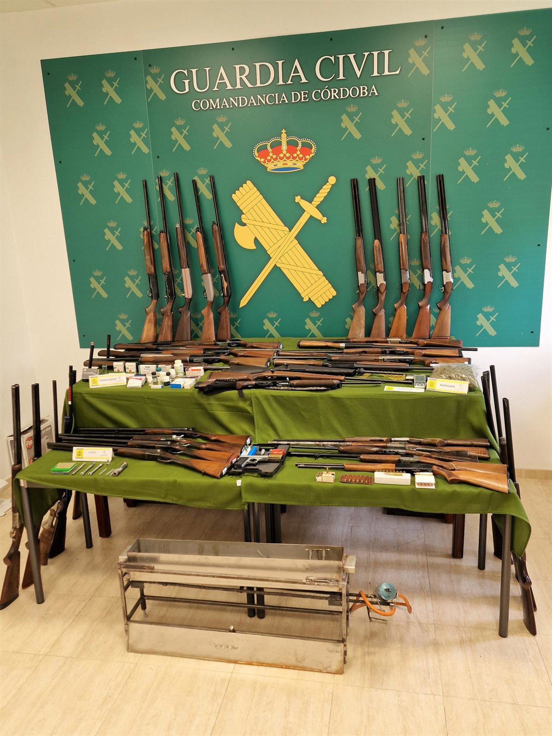 Armas incautadas a los detenidos, junto a las armas retiradas a los clientes del taller clandestino de Cabra. - GUARDIA CIVIL