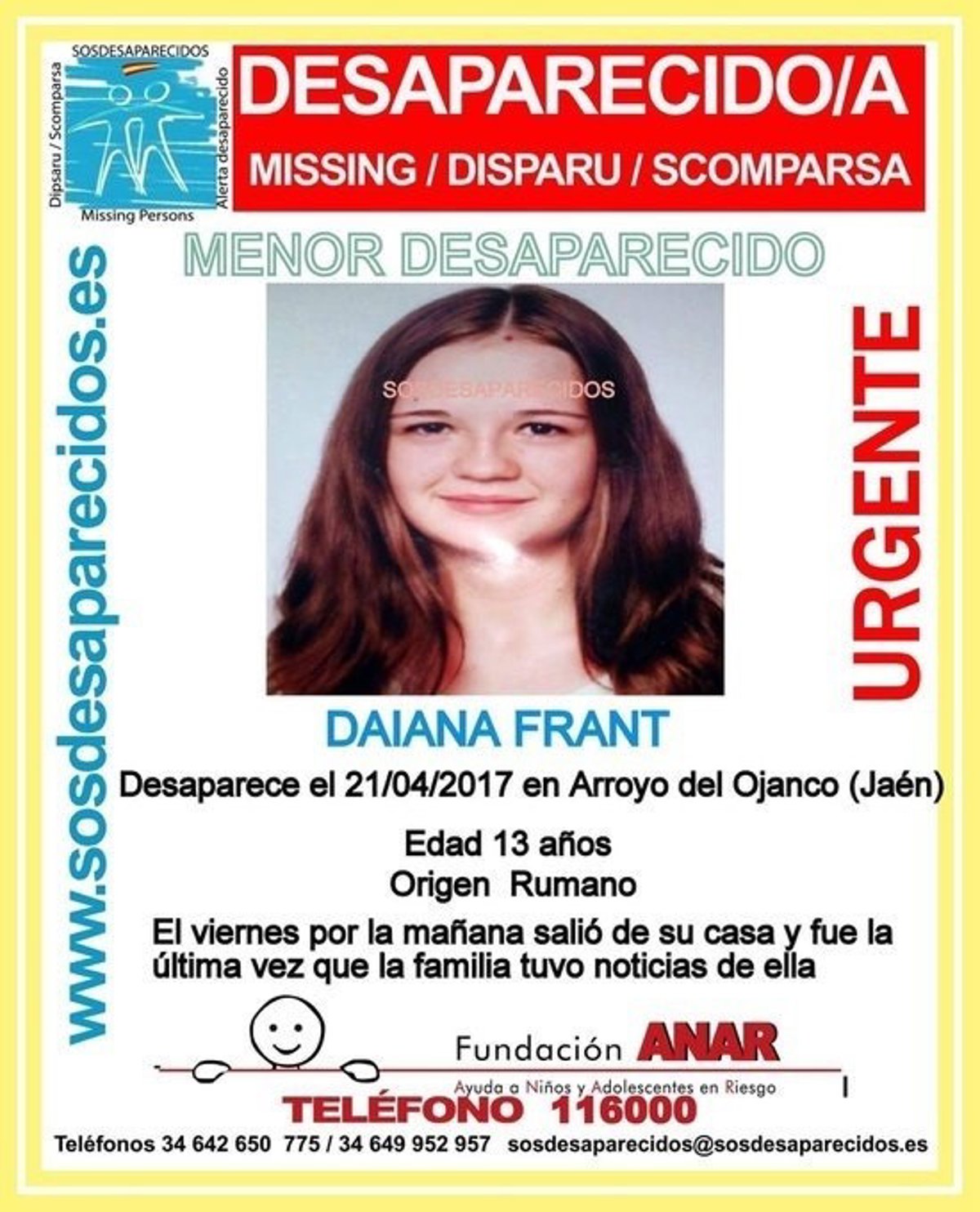 Fuentes del Instituto Armado han explicado este jueves a Europa Press que los padres de Daiana Frant, de origen rumano, presentaron la denuncia el pasado martes señalando que su hija "se había ido de casa de forma voluntaria".