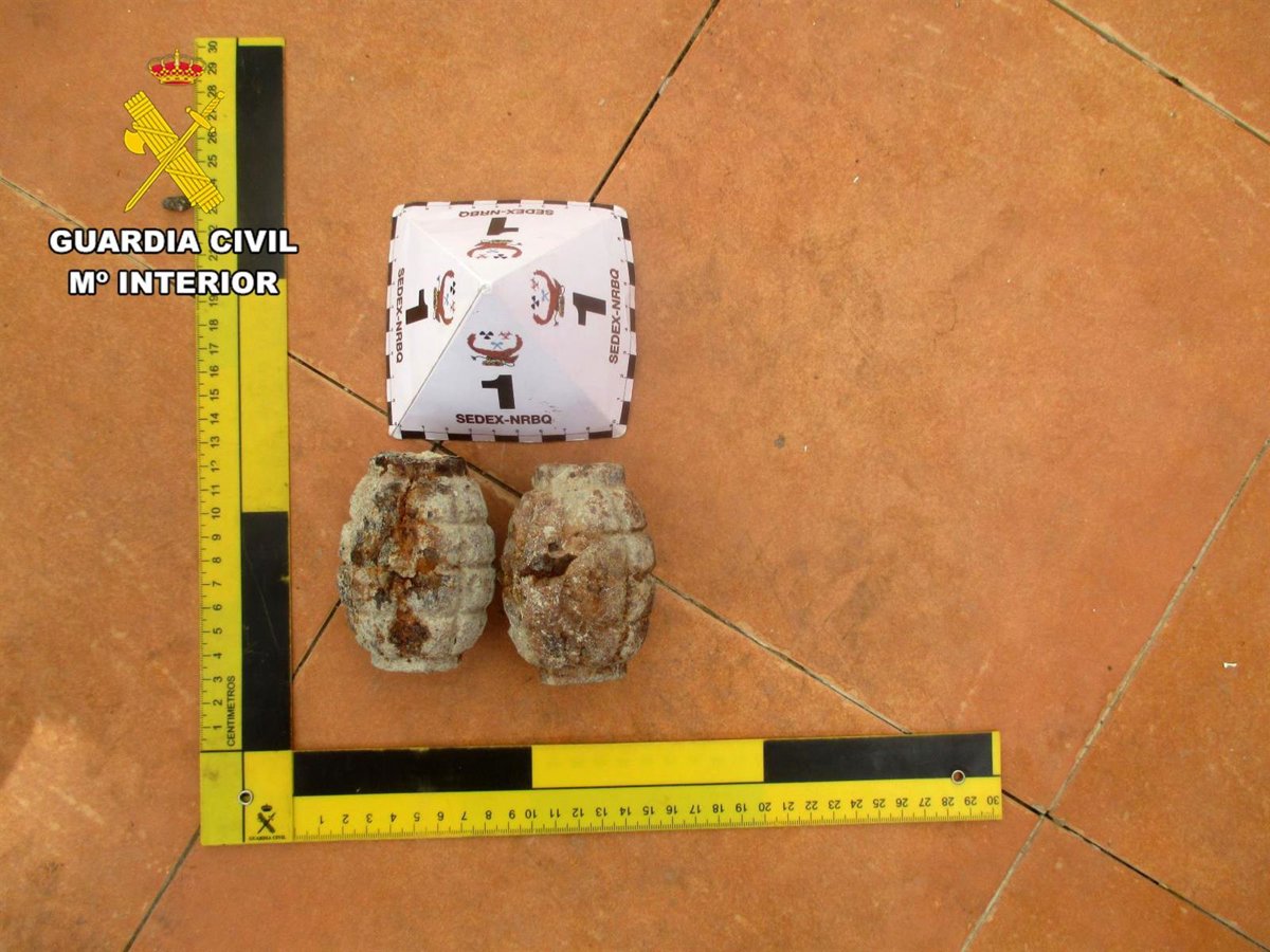 La Guardia Civil ha procedido a la neutralización de dos granadas de mano de la Guerra Civil halladas en una finca de la localidad jiennense de Jamilena. Los artefactos estaban oxidados, pero mantenían su carga explosiva.