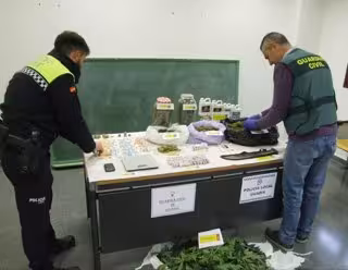 Al registrar el trastero, la Guardia Civil y la Policía Local encontraron 1.496 gramos de marihuana repartidos en botes de cristal y bolsitas unidosis; 651 gramos de resina y polen de hachís en "bellotas" y en dosis ya preparadas; una báscula de precisión; 13 plantas de cannabis sativa y toda la infraestructura necesaria para el cultivo de estas plantas.