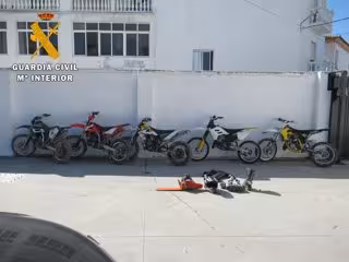 Según ha detallado la Guardia Civil en una nota, la fase de explotación de la operación ha conllevado recuperar prácticamente todo lo robado en la nave: cinco motocicletas, una motosierra y un par de botas, unas gafas protectoras, un peto protector, unas rodilleras y un casco de motorista.