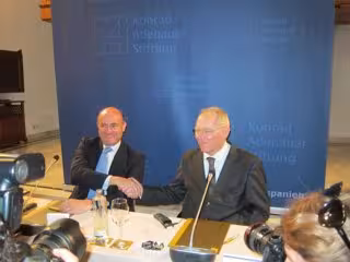 En rueda de prensa tras el encuentro mantenido en el marco de las jornadas organizadas por la Fundación Konrad Adenauer en Loja (Granada), De Guindos ha anticipado que durante la reunión se ha barajado la posibilidad de establecer un "esquema de esponsorización y patrocinio" tanto por parte del Gobierno alemán como del español.