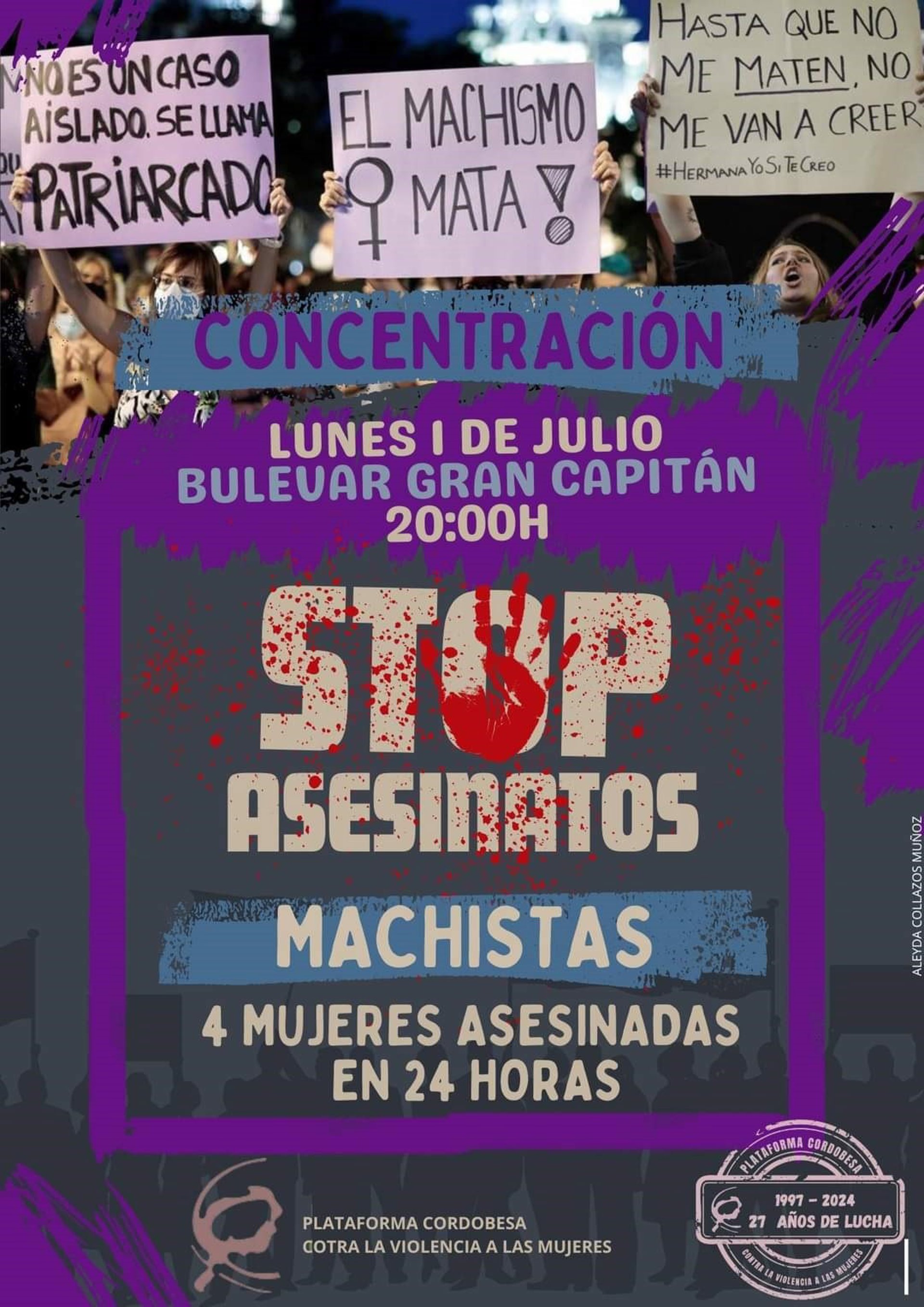Cartel de la concentración convocada por la Plataforma Cordobesa Contra la Violencia a las Mujeres. - PLATAFORMA CONTRA LA VIOLENCIA A LAS MUJERES