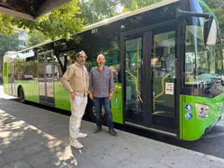 Juan Hidalgo y José García junto a un autobús de Aucorsa. - HACEMOS CÓRDOBA
