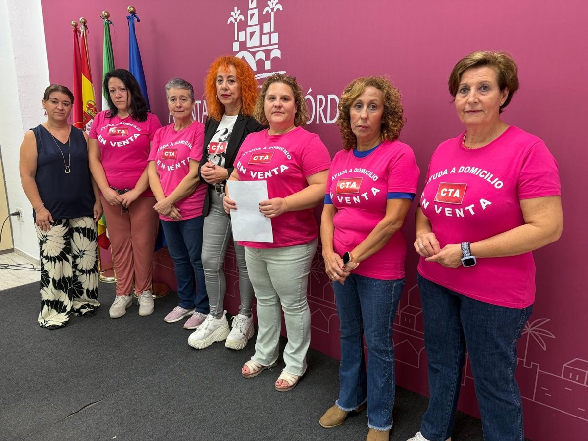 La concejal de Hacemos Córdoba en el Ayuntamiento de la capital, Irene Ruiz (1i), y representantes de la ayuda a domicilio. - HACEMOS CÓRDOBA