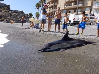 El animal parece que llegó a la zona casi con vida, pero podría estar enfermo y murió poco antes de ser localizado por los bañistas, dado que no presenta ninguna herida en su cuerpo, según ha manifestado el encargado de la empresa de limpieza de playas, Miguel Cabrera, que ha aclarado que tras el protocolo de rigor se ordenó la retirada del delfín.