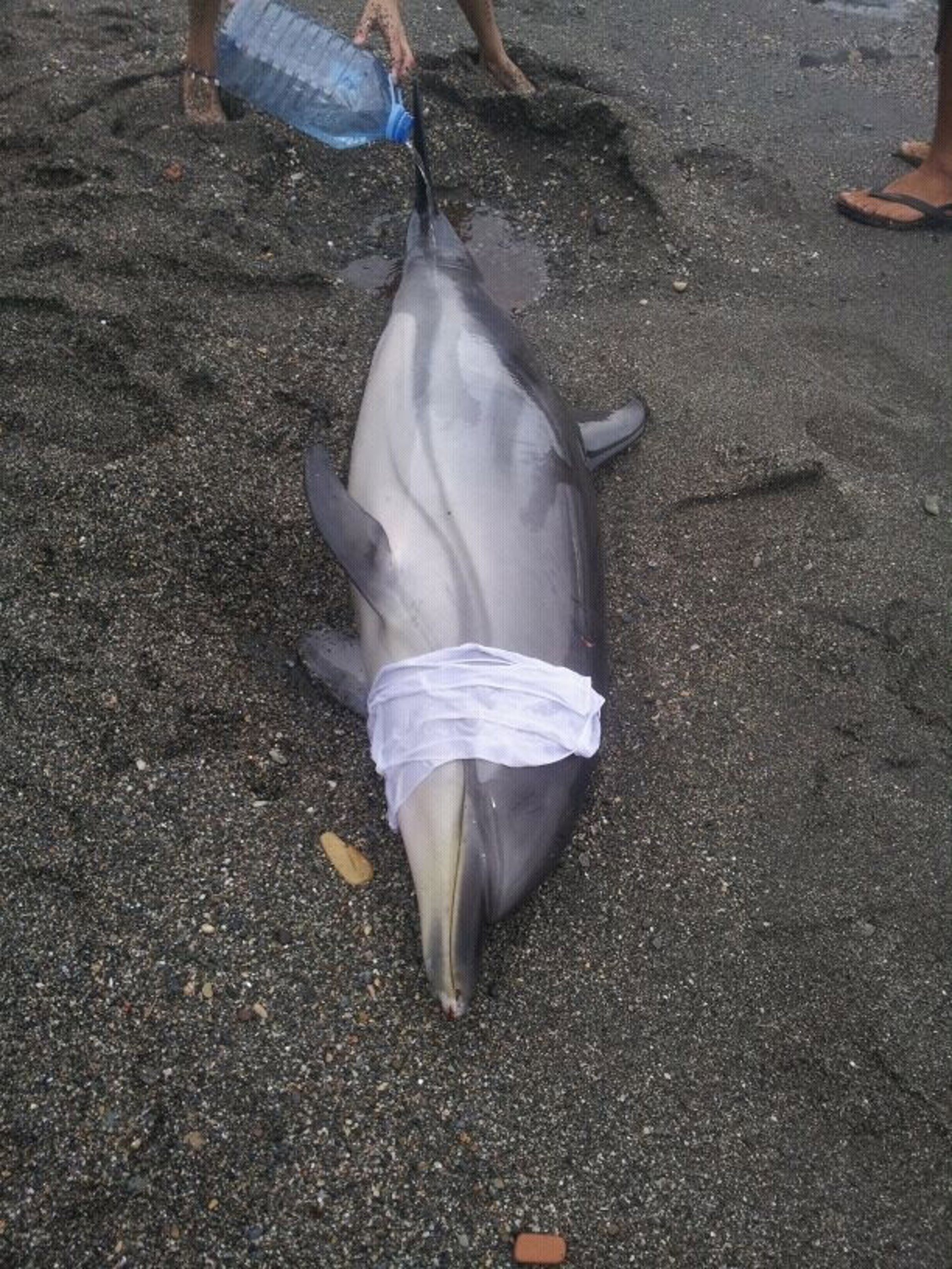 Un delfín, de un metro y medio aproximadamente y unos dos años de edad, ha sido encontrado en la mañana de este viernes varado en la playa de El Pozuelo, en Almuñécar (Granada), por parte de una bióloga que se encontraba en la zona realizando un estudio acerca de las medusas.