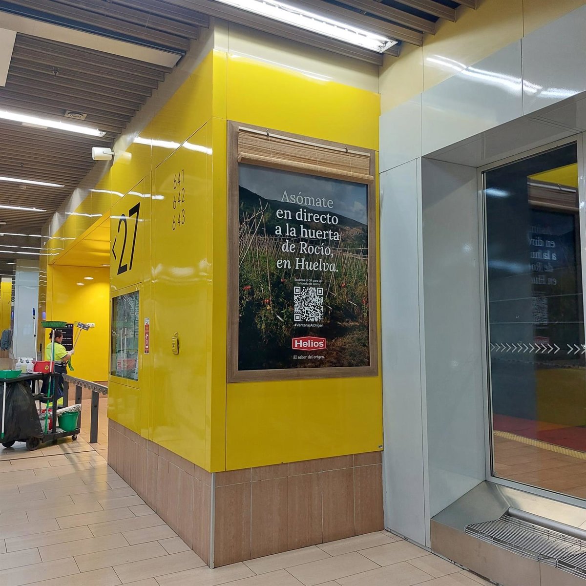 El grupo Helios ha instalado en el centro de Madrid "ventanas" a los huertos andaluces y extremeños donde crecen las frutas y verduras de cultivo local con los que elaboran sus salsas. Así, mediante códigos QR, los viajeros que pasen por el intercambiador de autobuses de Moncloa podrán conectar en directo a través de cámaras en streaming con el campo andaluz.