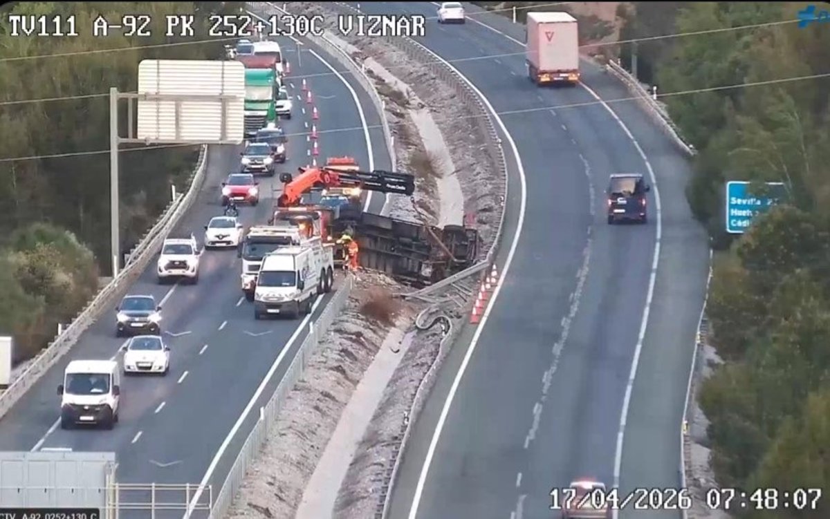 El camión accidentado ha quedado ocupando una parte del carril izquierdo de la vía en sentido Almería que ha sido cerrado hasta que se proceda a su retirada, lo que ha complicado la circulación en este punto de la vía, según ha informado la DGT a través de sus redes sociales.