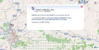 La Guardia Civil mantiene cerrado al tráfico el carril en sentido Guadix a la espera de la llegada de una grúa de gran tonelaje para la retirada de vehículo siniestrado.